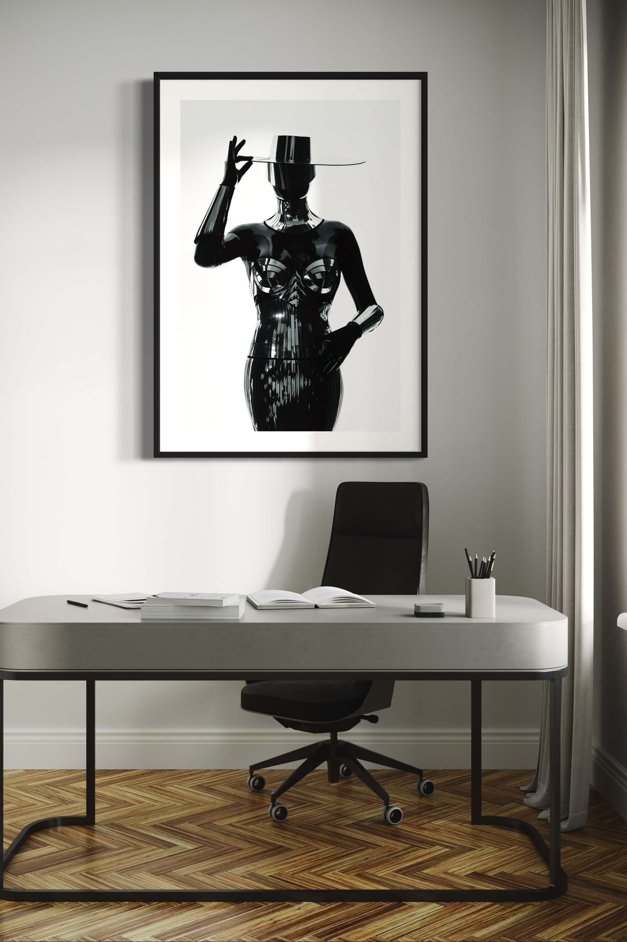 Step into a world where elegance meets edge. Diva 1 is a bold exploration of power, poise, and provocation — captured in striking black and white. Wrapped in a metallic latex ensemble, the subject commands attention, exuding both strength and sensuality. This fine art photograph merges high fashion with fetish aesthetics, highlighting the sculptural beauty of latex in stark contrast to soft skin and deep shadows. The result is a timeless, stylized piece that speaks to confidence, control, and allure.