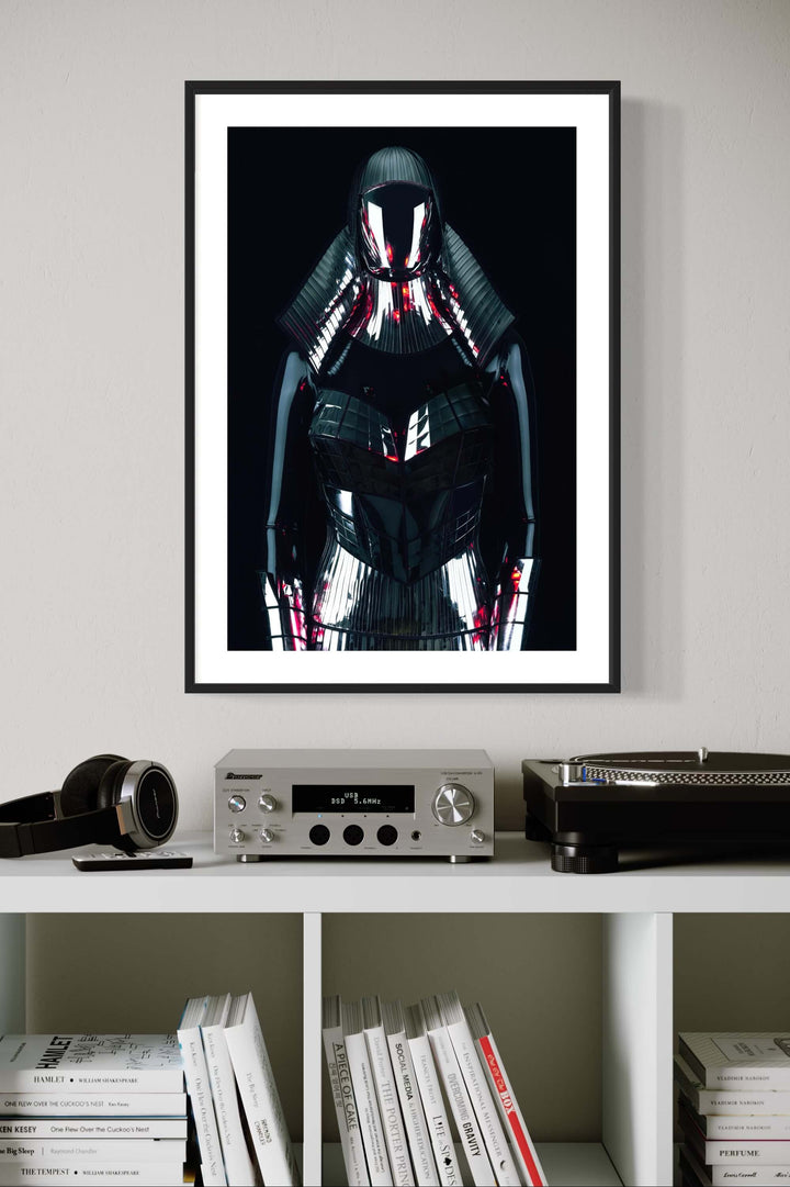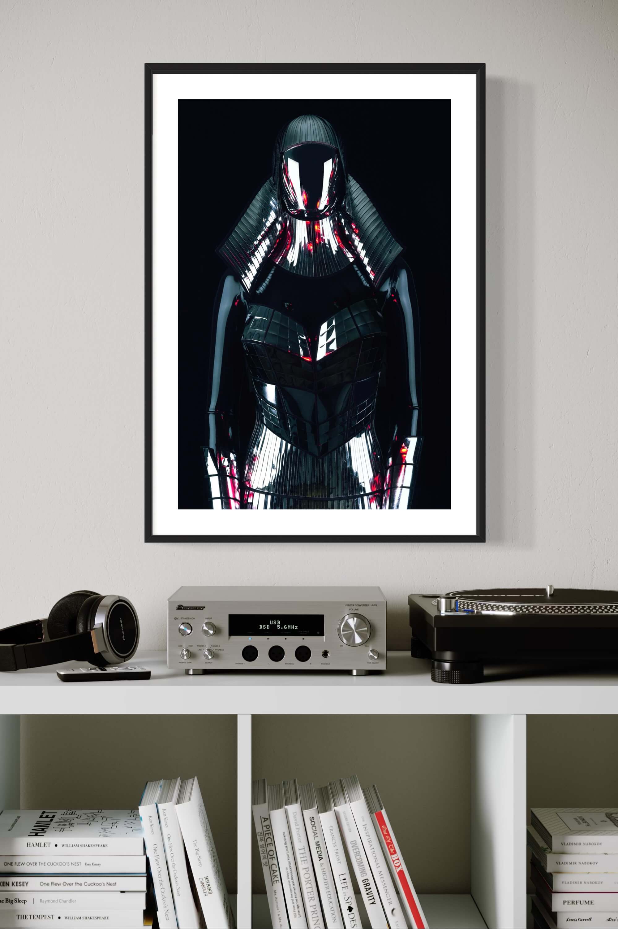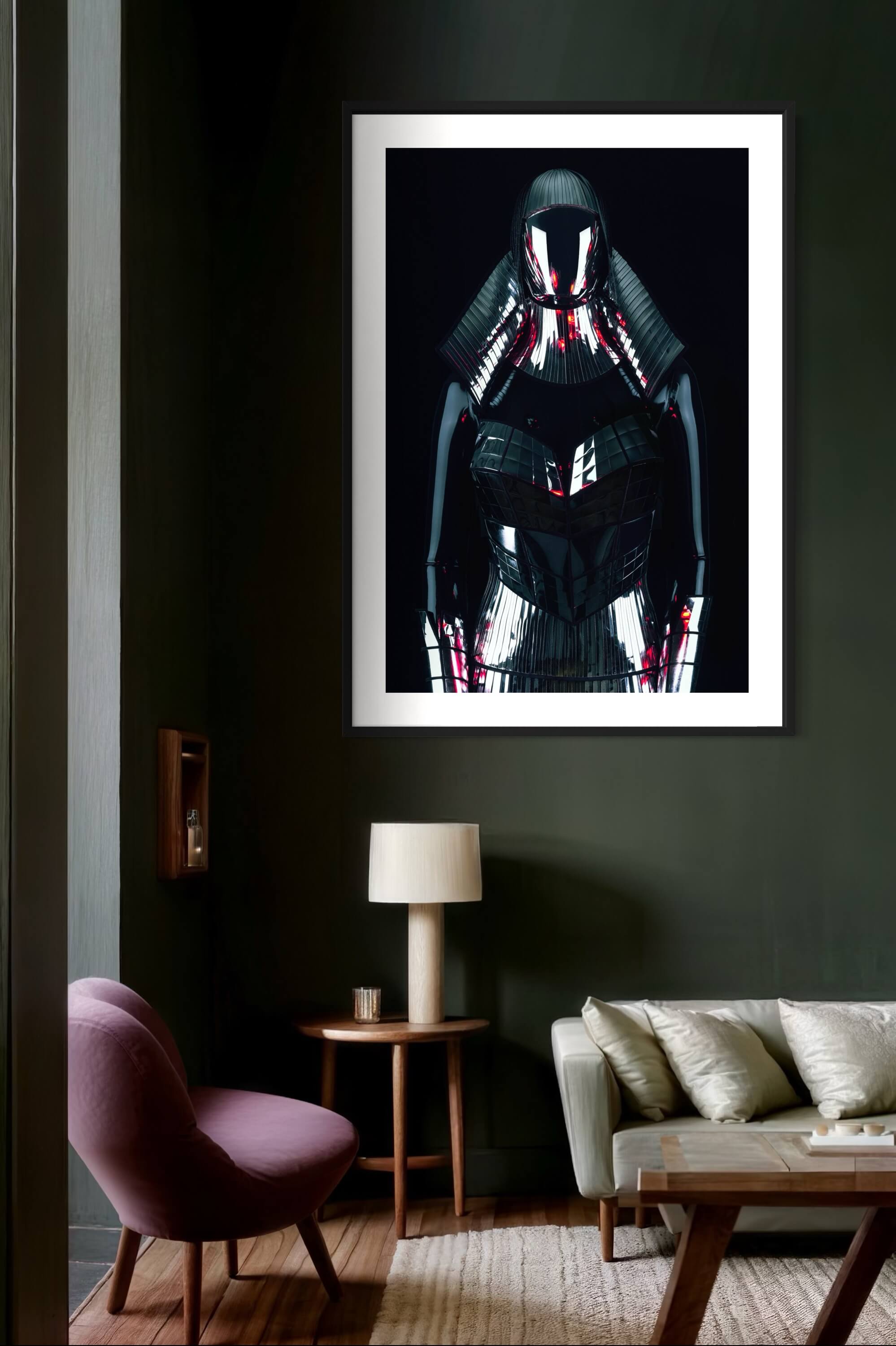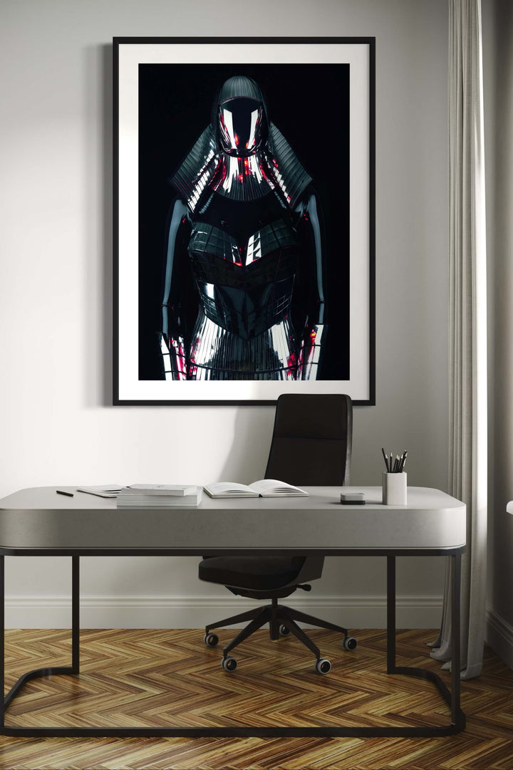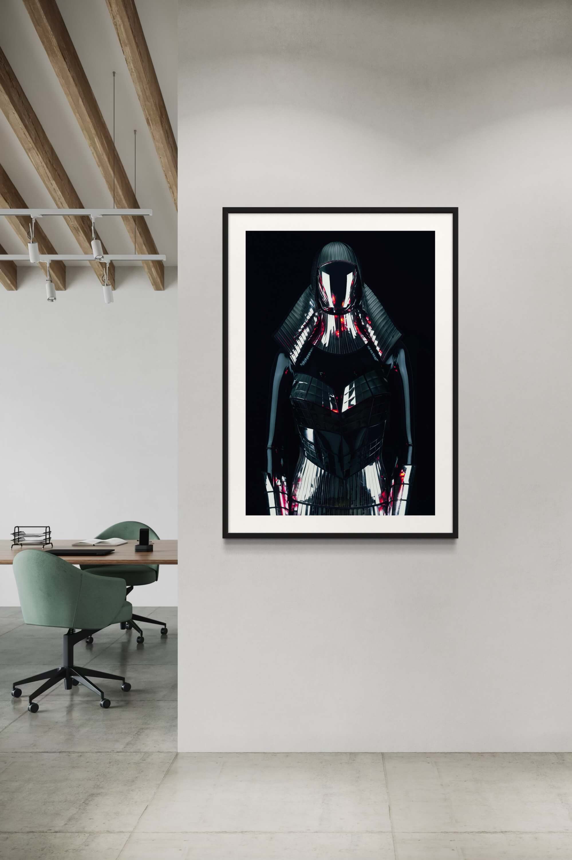 From another time - or perhaps beyond time. This photo artwork features a latex fetish model in a futuristic outfit that fuses fashion, fantasy, and fetish into one bold vision. Sleek lines, high gloss, and sculptural silhouettes create a visual language that feels alien, powerful, and deeply human all at once. Inside Out explores identity as armor — a second skin that both reveals and protects. Stylish, different, unapologetically avant-garde. For collectors who see the future in art that dares to be different.